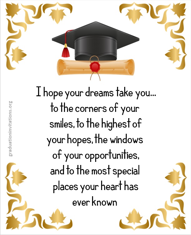 We have the best collection of digital Graduation Quotes images with different motives, creative and original to print or share online for free. Graduation Quotes with Messages to share.